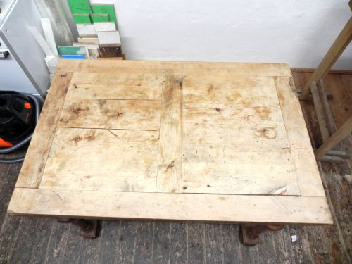 ... das Heu war noch in der Schublade und Sägeschnitte im Deckblatt der als Werkbank benutzten Kommode...