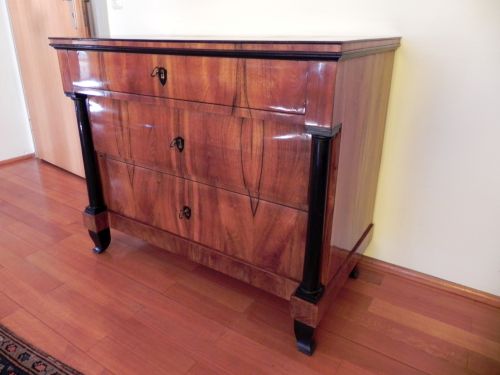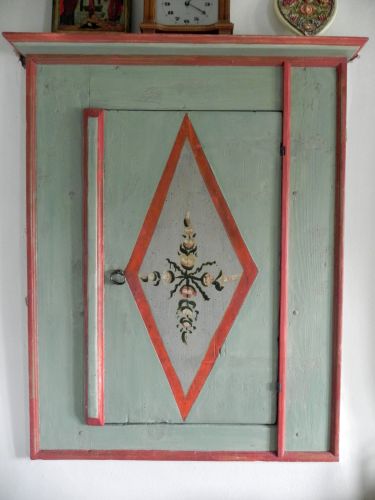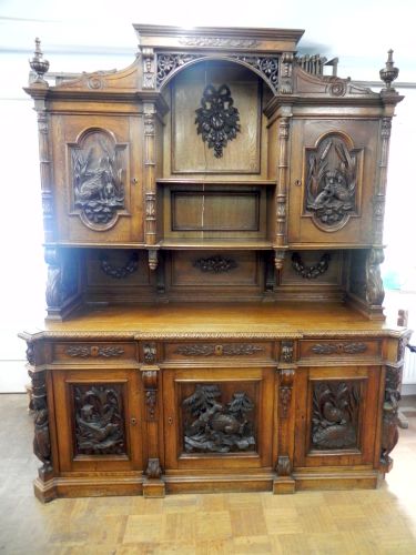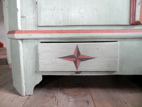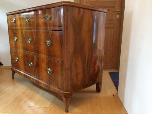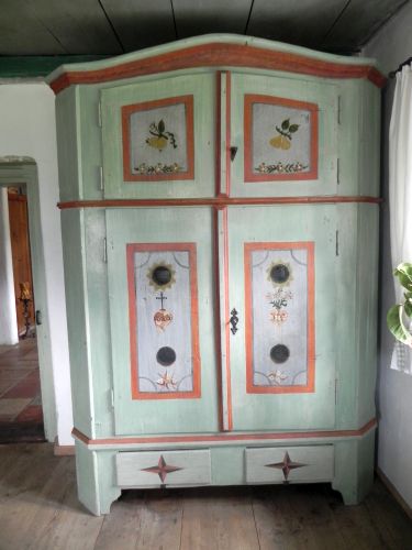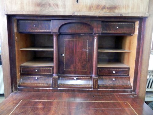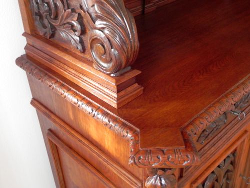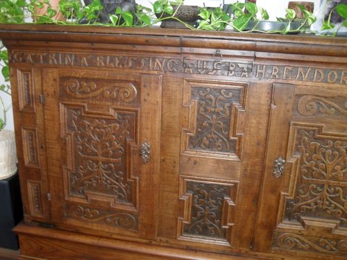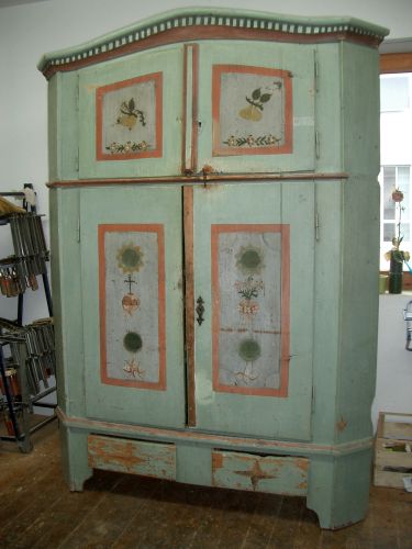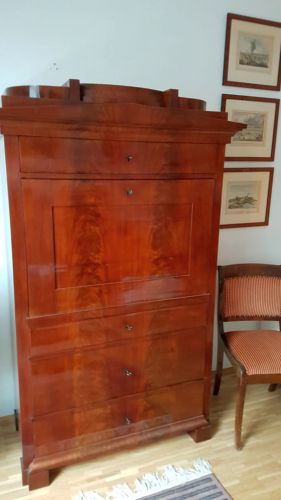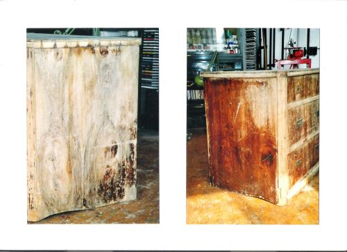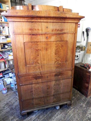 Möbel, das von einer Familie ca. 1940 vom Sperrmüll gerettet wurde. Der Aufsatz konnte nicht mehr transportiert werden. Ausführung sämtlicher Holzarbeiten incl. Ergänzung eines Sockels; Oberflächenbehandlung Leinöl- Schellack-Gemisch mit zusätzlichem Wachsüberzug