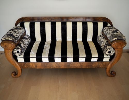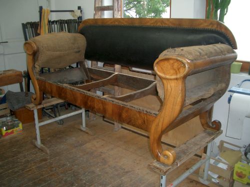 Bei früheren Polsterarbeiten wurde das Holz immer weiter und teilweise ganze Partien komplett überpolstert. Ausführung sämtlicher Holzarbeiten; Oberflächenbehandlung Schellack-Handpolitur;