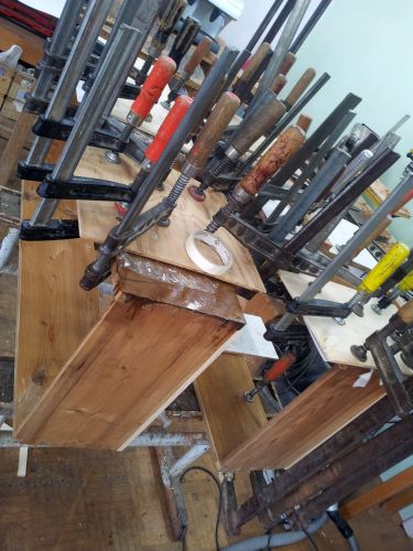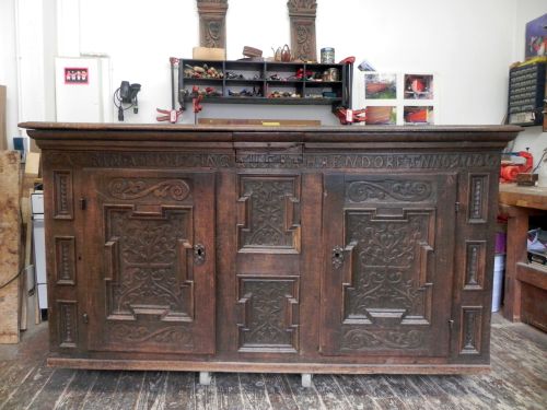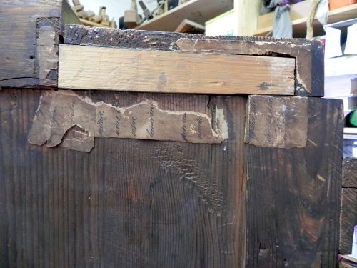 Ausführung sämtlicher Holzarbeiten; Ergänzung vieler Profilleisten; Begradigen von verworfenen Seitenteilen